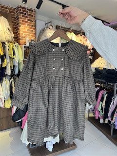 پارچه چهارخونه طرحش چهارخونه ریزه و حالت پاییزه داره. آستردار جنسش از شبیه فلانل سبک یا پنبه چهارخونه هست.بالاتنه دکمهدار دوبل،چیندار زیر سینه،آستین ساده با مچ تاخورده دکمه دار مناسب ست های مهمانی و استایل دخترانه شیک